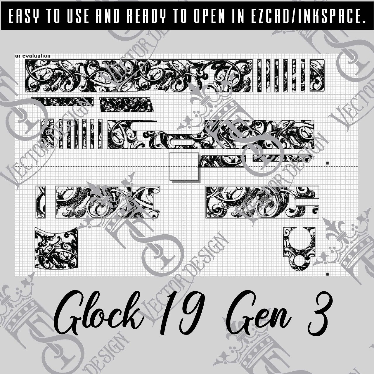 STVector Design Glock 19 Gen 3 scroll Vector Design engraving files,pistol engrave,vector ,laser engraving svg dxf ai digital download